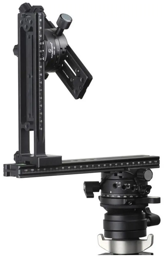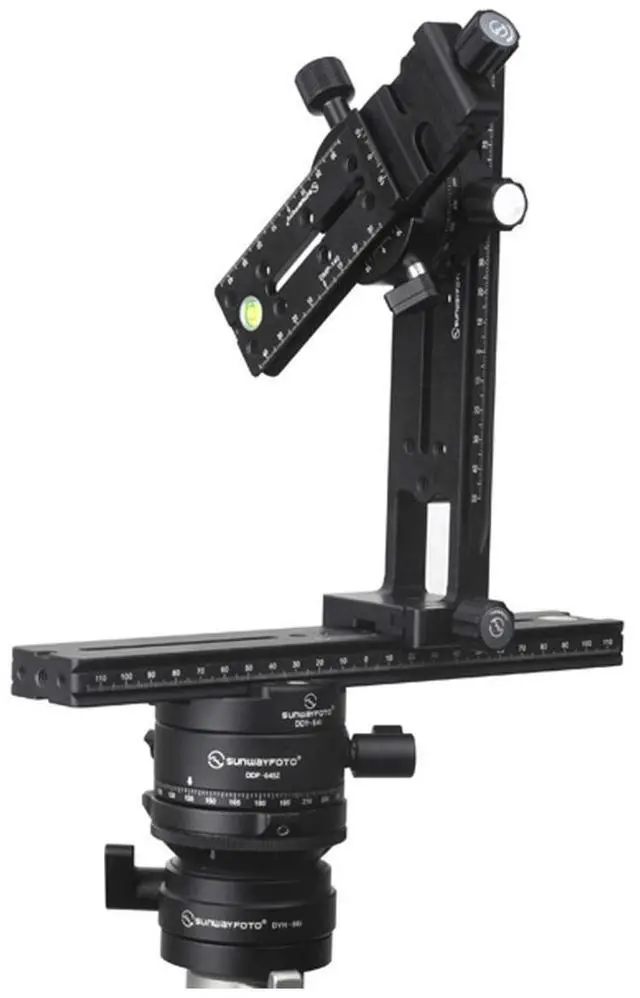 Its laser-engraved centering index marks and aligned scale of quick-release plate ensure precise control of the nodal point during panoramic photography. The DDY-58 Discal Clamp, also compatible with all Arca-Swiss style plates, can be mounted directly onto a tripod or monopod. Its hollow-out design makes it lighter, and safety stop relief grooves protect your camera from accidental drops. Finally, the DMC-200 Vertical Rail with a screw-knob clamp serves as a crucial component for panoramic photography. Its double dovetail design allows you to mount the rail to an Arca clamp and combine it with a DDH-03&DDY-58 combo setup for incredible versatility.