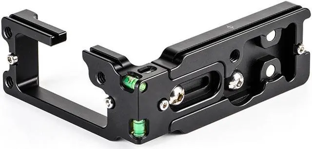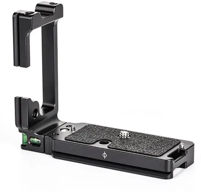 This feature also serves as an additional anti-twist measure, further enhancing the stability of your camera setup. The L-Bracket is versatile, boasting an extendable vertical plate. Simply loosen the slot screw to increase the space between the camera and ballhead when shooting vertically. This feature ensures there's no interference with data cables, making it a perfect fit for your Canon EOS R5/R6 camera. The L-Bracket is composed of a horizontal plate and a detachable vertical one. The base horizontal plate can be used independently when a lighter setup is desired. Designed with the user in mind, this L-Bracket provides full access to communication ports without the need to disassemble the quick-release plate.