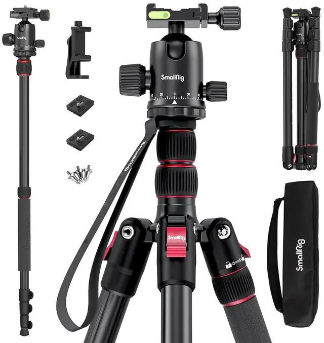 When seeking a durable and versatile solution for your photography and videography needs, consider the CT-20 4-Section Aluminum Tripod/Monopod with Ball Head. Crafted from high-quality aluminum, this sturdy tripod offers exceptional stability and can effortlessly support up to 33 lbs (15 kg) of equipment. Its robust construction ensures it can withstand the rigors of outdoor photography, making it an ideal companion for hiking or traveling. This 2-in-1 tripod and monopod is not just a support system, but also a tool for creative flexibility. With its 4-section column legs and 3 quick-release flip-locks, you can swiftly adjust the working height from 18.5" to 78.7", catering to a wide range of shooting scenarios.