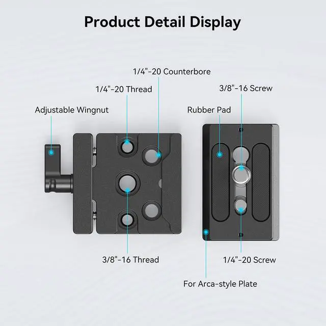 Simply place the QR plate into the clamp and tighten the knob screw for a firm grip. But the versatility doesn't stop there. The baseplate of this quick release system is equipped with multiple 1/4"-20 and 3/8"-16 threaded holes, as well as thorough holes. This thoughtful design allows for easy attachment to tripods or other platforms, making it an adaptable solution for various shooting scenarios. In the world of photography and videography, where every second counts, the SmallRig Quick Release Clamp and Plate (Arca-type Compatible) 2280 offers the convenience of quick attachment and detachment without compromising on stability.