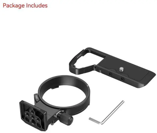 The baseplate can be used separately to meet your various needs, offering maximum flexibility for your shoots. The SmallRig 4148 Mount Plate Kit is also equipped with a hinge arm at the battery door that fits the camera body perfectly, providing a better grip experience. It includes a strap slot, a 1/4"-20 threaded hole for the wrist strap, a quick release plate, and a magnetic double-head wrench for easy installation and release. Please note that this product only supports lens adapter rings of less than 63mm in outer diameter and is not compatible with Tamron lenses with a USB-C port or Sony compact lenses.