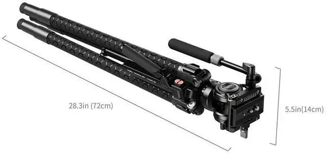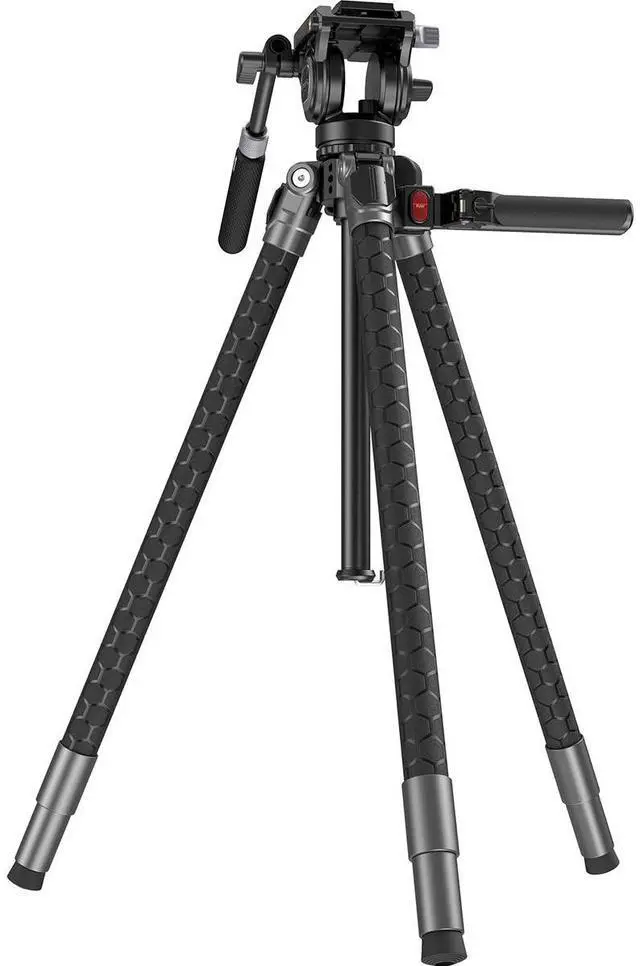 The tripod also features 1/4"-20 threaded holes for attaching accessories like magic arms, along with a built-in flat head screw for convenient camera installation and removal. It weighs only 3.7 kg ( 8.1 lbs).
