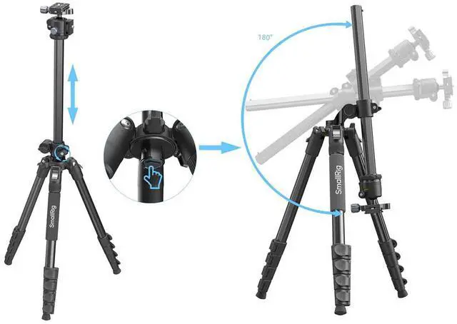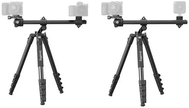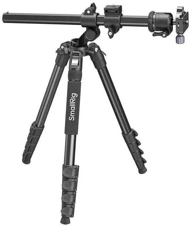 SmallRig CT25 Professional Overhead Camera Tripod 5290 is an aluminum alloy tripod specifically engineered for overhead shooting. It features a unique center column that can be used as a boom arm and tilted up to 180 Degree for high-angle shots. The tripod employs a flip-lock mechanism for quick and secure leg tightening, with legs capable of supporting up to 10kg / 22lb. One leg can be easily detached and mounted with the head to function as a monopod. The photography ball head has a payload of 5kg / 11lb (3kg / 6.6 lb in overhead shooting mode) and is equipped with a 1/4"-20 threaded hole for attaching accessories such as magic arms (ID 3874, 3959), allowing for expanded setups with microphones, monitors, or transmitters.