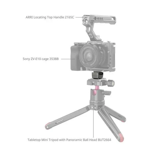 The quick-release plate is compatible with any equipment featuring 1/4"-20 threads, including lightweight mirrorless cameras, monitors, and action cameras. Additionally, it includes two optional locating pins that offer enhanced stability by preventing device deflection, especially when used with SmallRig action camera cages such as models 4119B, 3084C, and 4088B. The baseplate is equally versatile, featuring a 1/4"-20 threaded hole and a locating hole, allowing for the attachment of various equipment with a 1/4"-20 screw. This includes accessories like the mini Ball-Head Mounting Support Kit 2948B, mini Tripod BUT2429, and models 3905.