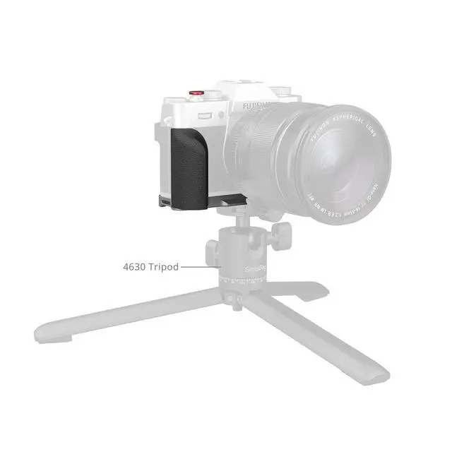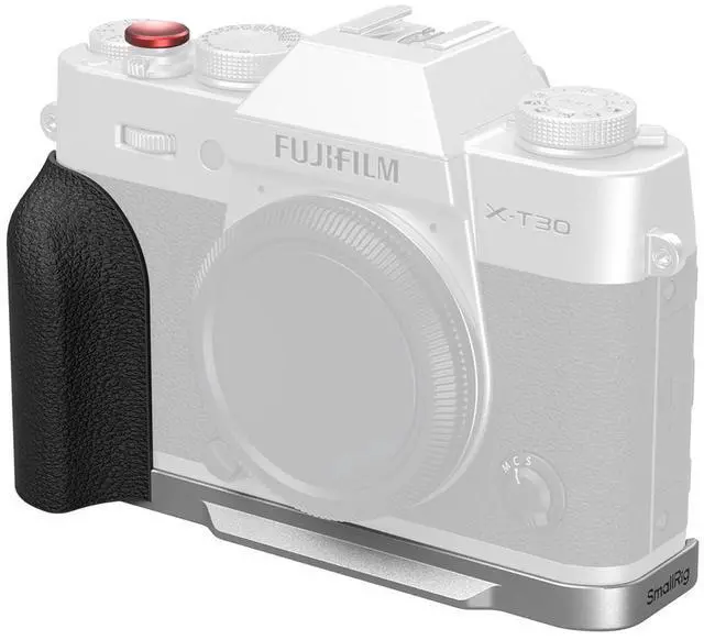 SmallRig L-Shaped Mount Plate with Silicone Handle for FUJIFILM X-T30 / X-T30 II / X-T30 III (Silver) 5664 is designed to enhance grip comfort and stability for more controlled shooting. It securely attaches to the camera using a 1/4"-20 screw, featuring integrated silicone pads to protect against scratches. This L-shaped grip fits snugly to the camera and matches its texture and color for seamless aesthetic integration. The mount plate incorporates an Arca-Swiss quick release plate and a 1/4"-20 threaded hole at the base, allowing for swift mounting on Arca-type tripods (ID 4222B, 4059) and camera clips with quick release mount plates (ID 5053).