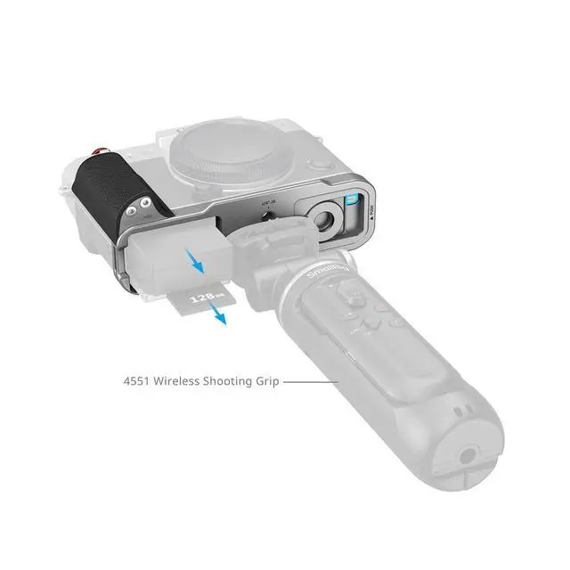 A strap slot is also included for attaching wrist straps (ID 4881, 5054, 5055). The L-shaped grip maintains full access to all camera interfaces, including the battery compartment, focus ring, memory card slot, and speaker ports. This unit also includes a flat wrench for easy assembly and disassembly, along with a shutter button cap to enhance tactile feedback during shooting. Style with PurposeDesigned for a