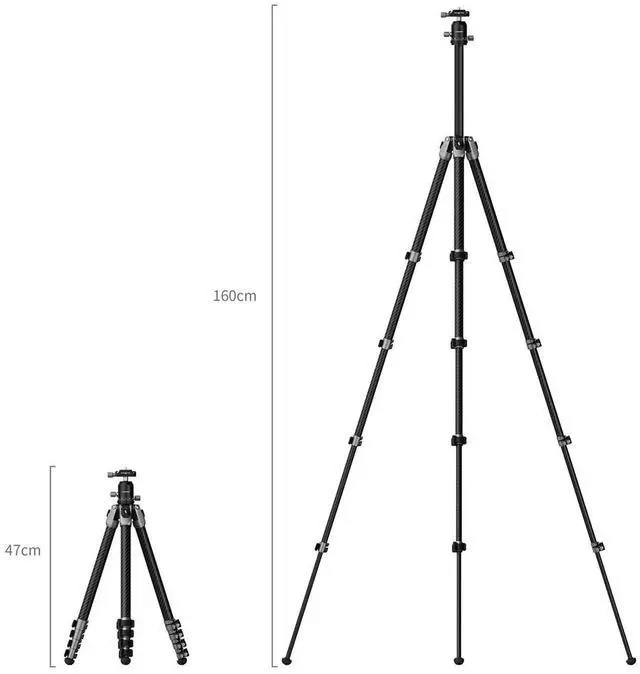 SmallRig Portable Photo Carbon Fiber Tripod 5478 is a lightweight photography tripod specifically designed for travel photographers. With a maximum leg diameter of 25.5 mm (1") and a 5-section leg design, it offers exceptional portability, extending to 160cm / 63" with the center column and folding down to just 47cm ( 18.5" ). Weighing only 1.4 kg ( 3.09 lbs), it's perfect for on-the-go shooting. The reversible center column provides an extended working height range, making it ideal for outdoor landscape photography and urban architectural shots. Constructed from high-strength carbon fiber materials, this tripod ensures outstanding stability despite its compact size.