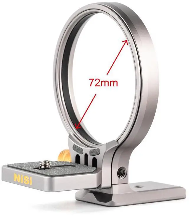Constructed from aircraft-grade aluminum alloy, the NiSi Wizard W-72 is both durable and lightweight, making it an ideal companion for photographers on the move. Its Arca-Swiss compatible mounting foot offers broad compatibility with a vast array of tripod heads and clamps, ensuring that you can integrate it with your existing equipment with ease. Additionally, the bracket includes a 1/4" mount, allowing for the attachment of various quick release plates, further enhancing its versatility. To ensure compatibility, the outer diameter of your lens mount must be smaller than the 72mm inner diameter of the Wizard.