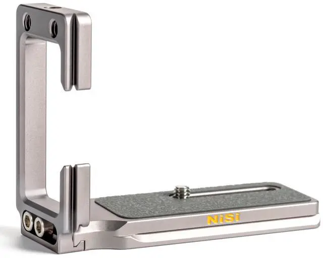 The NiSi PRO NLP-SG Adjustable L Bracket for Camera with Flip Out Screen (Tripod mount point at the front of the camera base) is a Universal Adjustable L Bracket that allows rapid switching of the orientation between landscape and portrait without making any changes on the tripod or tripod head. Both sides vertical and horizontal are Arca Compatible and will work with a wide range of Arca Compatible heads. The NiSi L Brackets have a great feature that allows the vertical smaller side to adjust to better accommodate the connection ports of a camera as well as horizontal to move away from the camera to allow extra room for cables and to allow full access to change the battery.