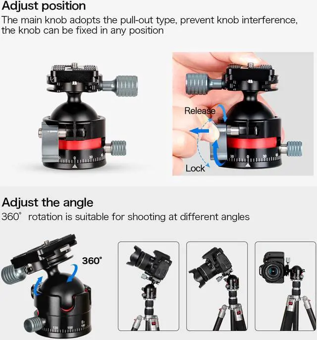 Koolehaoda Low-Profile Ballhead with 1/4" Screw Arca-Type QR Plate