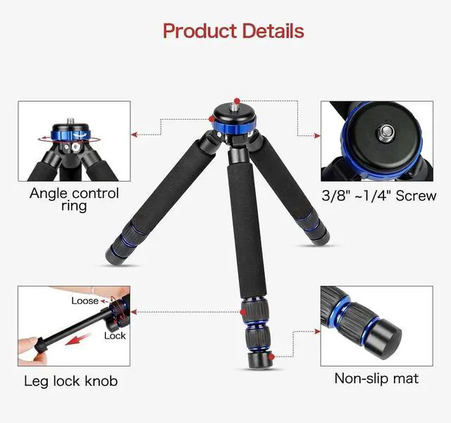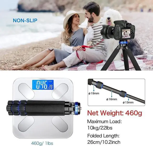 Non-slip feet design to keep the tripod steady.