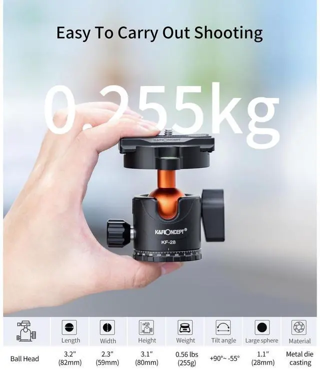 Equipped with a 360-degree panorama ball head and quick release plate, it offers seamless transitions between still and video photography. Whether you're capturing breathtaking landscapes or shooting a dynamic video, this tripod provides the stability and flexibility you need. Moreover, despite its compact size, the SA234 is far from slim when it comes to features. It comes with a convenient storage bag, making it even more portable and easy to store. In a nutshell, the K&F Concept SA234 DSLR Tripod is a blend of durability, versatility, and portability, designed to meet the diverse needs of photographers.