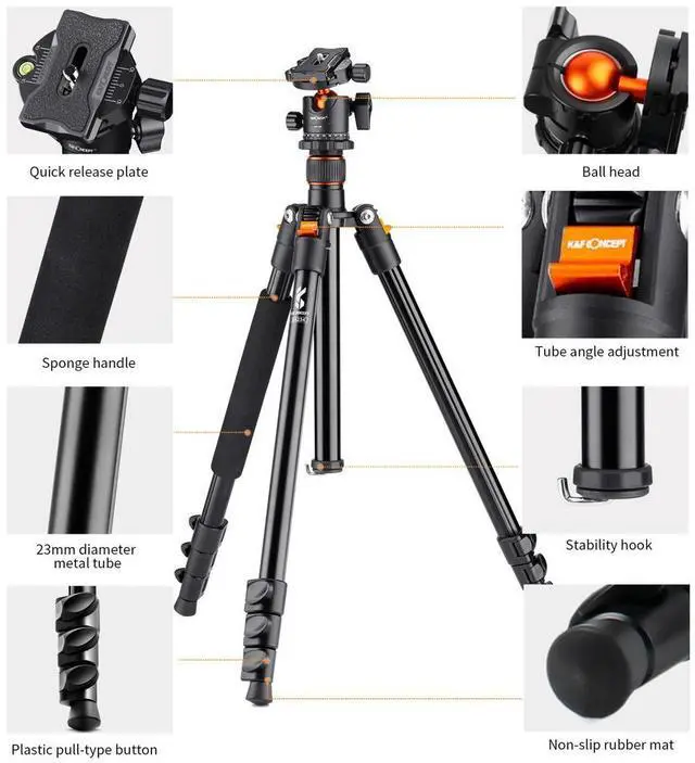 How to elevate your photography game Consider the K&F Concept SA234 DSLR Tripod. This 4-section aluminum tripod is not just lightweight and compact, but also incredibly sturdy and durable, making it an ideal companion for both travel and professional work. Engineered with high-quality aluminum, it can effortlessly withstand heavy loads up to 8 lbs and endure various weather conditions, ensuring your camera equipment is always secure. Its robust construction is complemented by its portability, making it easy to carry wherever your shoots take you. The SA234 DSLR Tripod stands out for its versatility.