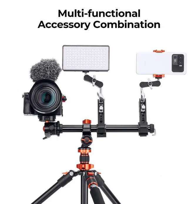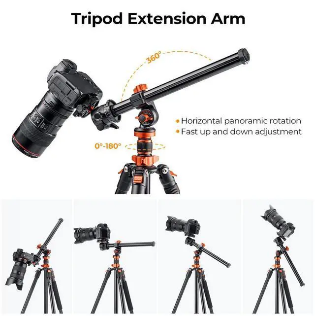 This multi-functional accessory combination tripod extension arm offers a plethora of features. The horizontal panoramic rotation and fast up and down adjustment provide accurate angle adjustments, marked with vertical and panoramic rotation scales for clear and straightforward operation. Additional features include a bubble level for maintaining balance, 1/4" and 3/8" screws for versatile mounting options, a removable weighing hook for added stability, and a 3/8" adapter. This professional-grade center column is an essential tool for any photographer looking to enhance their shooting capabilities.