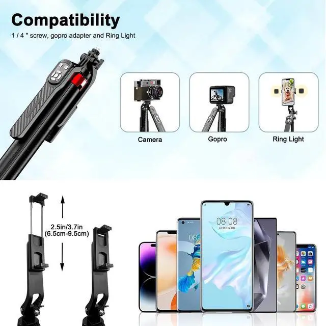 360° Rotating Handle and 70-inch Long Selfie Stick