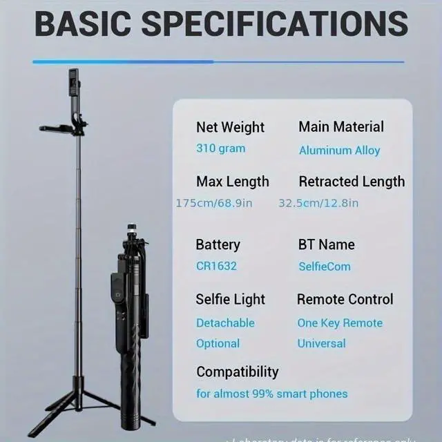 Expandable selfie stick, travel tripod, with remote control and phone holder