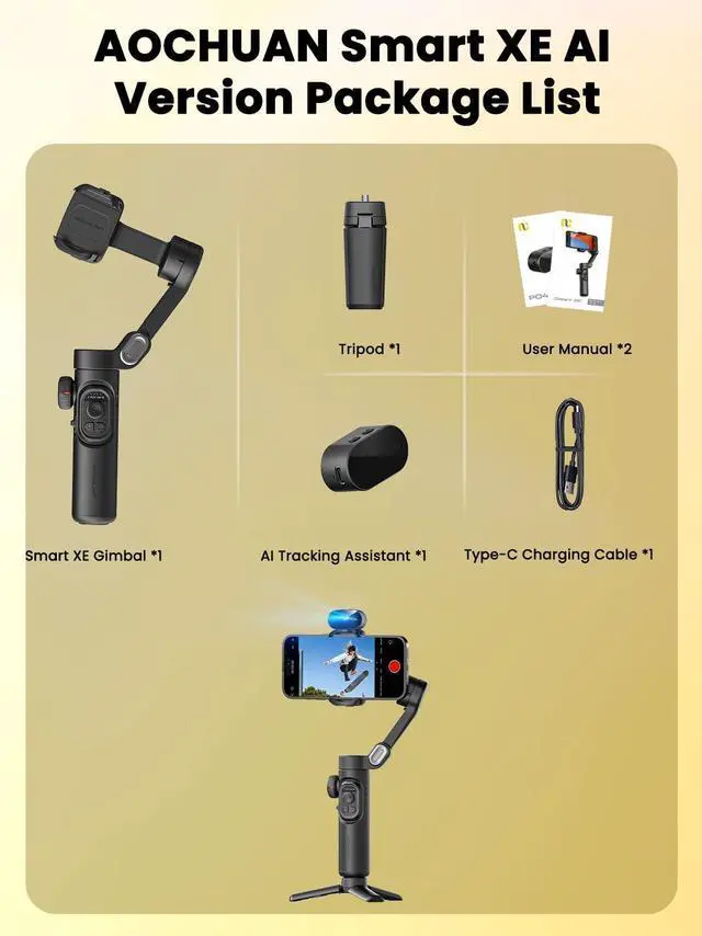 [Smart 8.0 Stabilization]AOCHUAN Smart XE AI vision gimbal phone stabilizer is powered by the most advanced AOCHUAN 8.0 Gen Stabilization. The powerful 3-axis gimbal motor drive can ensure steady video creation at multiple angles. Start your shooting journey with AOCHUAN AI gimbal.