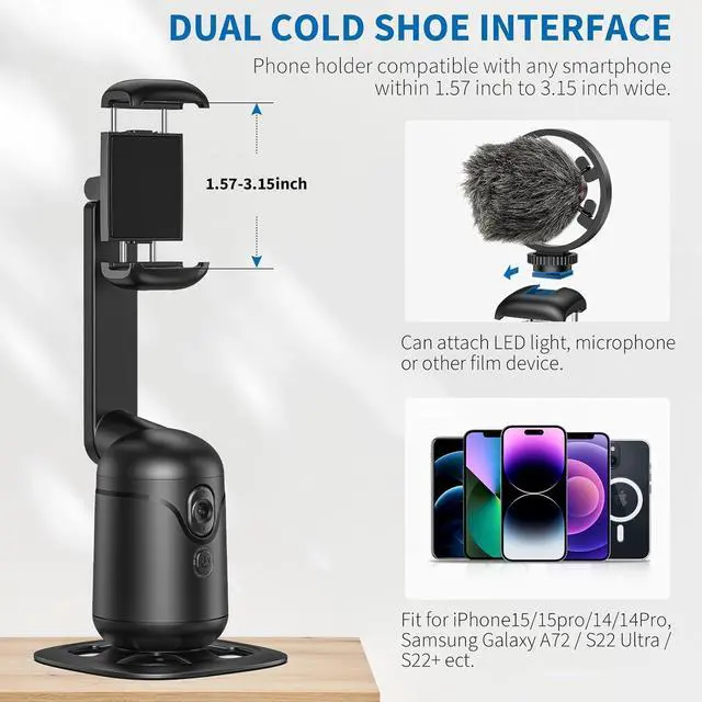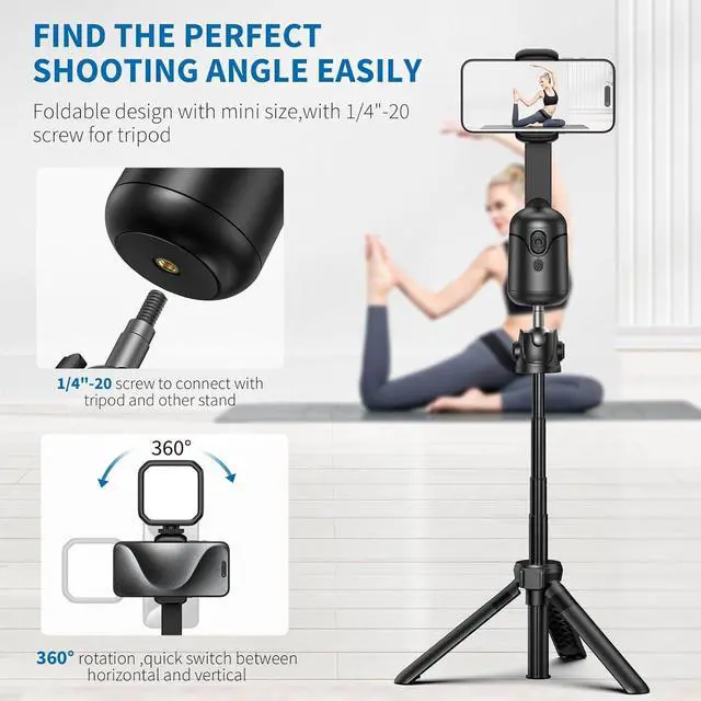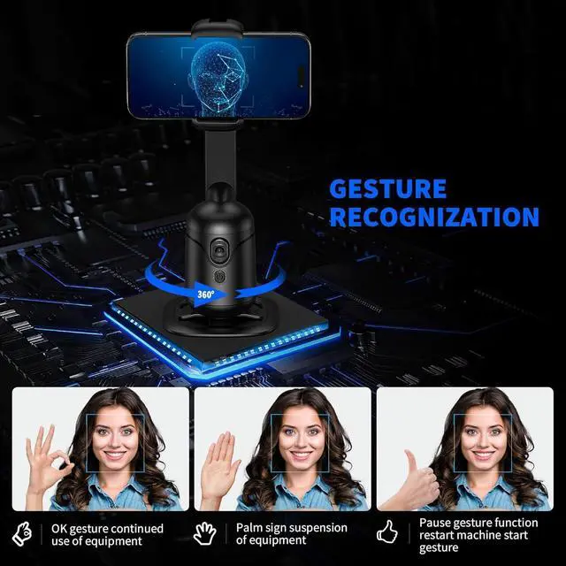 Auto Face Tracking Tripod, AI Phone Gimbal Stabilizer with Remote and Gesture Control, 360° Rotation, No App, 1200mAh Battery, 5-Hour Runtime, Cell Phone Photo and Video Kits Stand for Live Recording