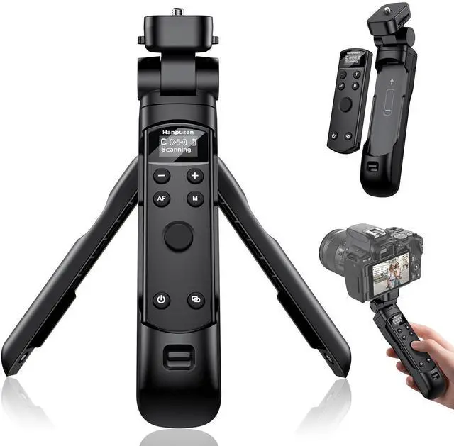 - Hanpusen tripod grip supports multiple shooting angles: Adjust the tripod for 360° pan and 135° flip (90° forward and 45° backward) to capture low-angle, overhead, or vertical/horizontal shots. Switch between formats without removing the camera with the camera remote shutter release for canon ideal for vloggers, live streamers, and content creater.