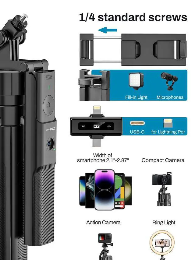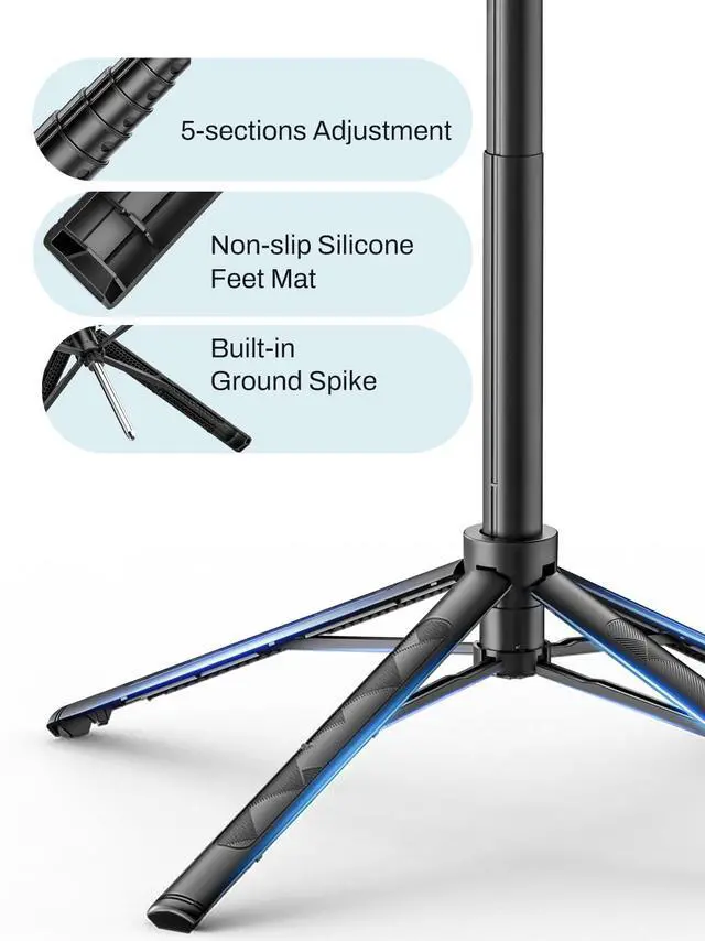 Stable Outdoor Setup with Ground Spike A built-in ground spike provides added stability when filming on grass, sand, or uneven ground, offering a steady base for outdoor content like travel vlogs or backyard shoots.