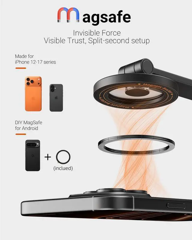 Your All-in-One Magnetic Mounting SolutionThis MagSafe mount secures to any tripod via a 1/4" screw and is compatible with other tripod & monopod accessories. Detach it for use as a DESK phone stand, or attach it seamlessly to Arca-Swiss clamps for professional gear