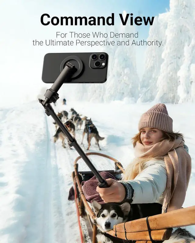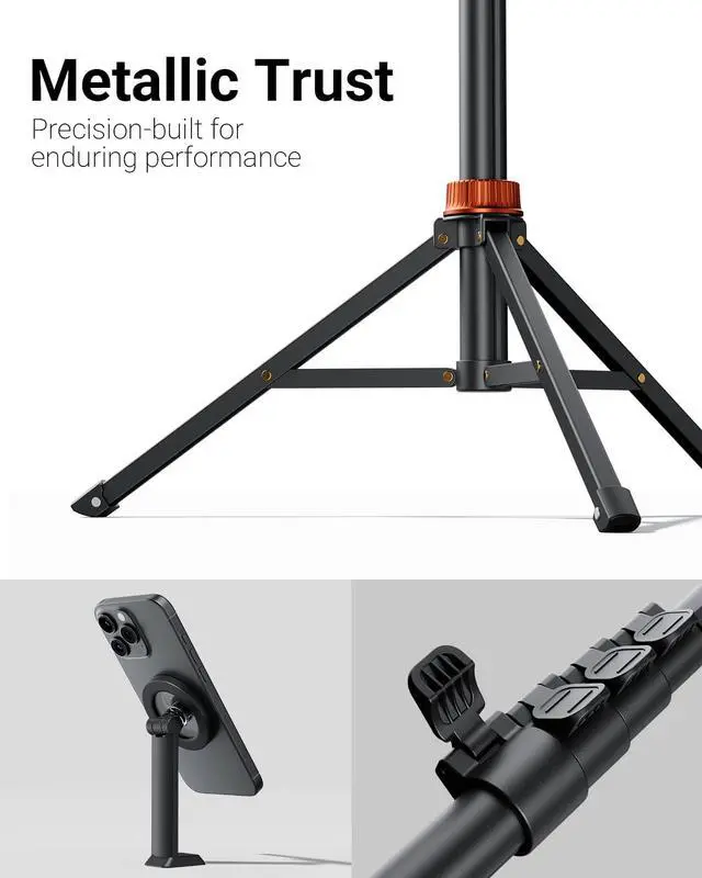 Steel-Reinforced SteadinessFeaturing a tri-functional design, this 69-inch aluminum phone tripod stand integrates a steady base, telescoping arm, and magnetic phone holder - an all-in-one solution for content creation, from overhead product shots to full-body portraits