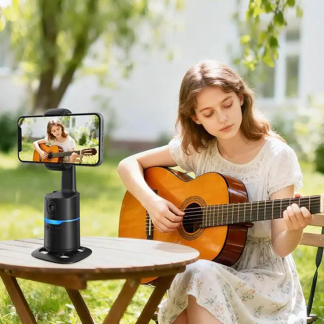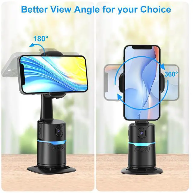 360° Face & Body Tracking: Built-in AI camera, this auto face tracking phone holder seamless 360°rotates to follow your movement in real time and automatically adjusts perfect shooting angles to keep you centered in every frame. Free your hands for live streaming and video calls.