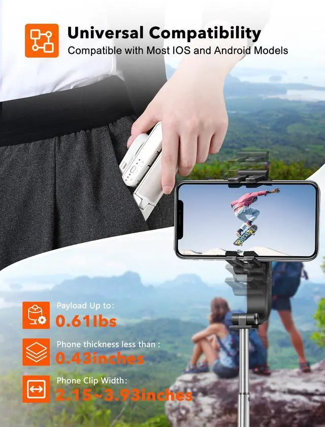 The iSteady Q phone gimbal has a five-section aluminium rod that can be pulled up to 19.6 inches after unfolding, which allows you to include more friends in a selfie and explore the new angles for taking photos. This smart selfie stick tripod with remote is a must-have tool for vlogging, live-streaming and YouTube!