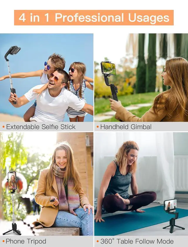 | Product Type | Phone Gimbal with AI Tracker | Phone Gimbal with Fill Light | Auto Face Tracking Tripod | Smartphone Gimbal | Action Camera Gimbal | Smartphone Gimbal with Remote |