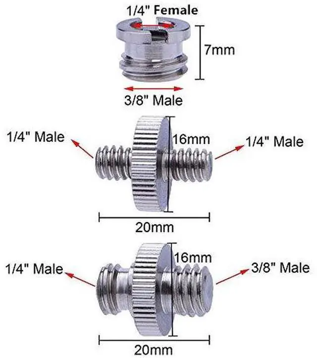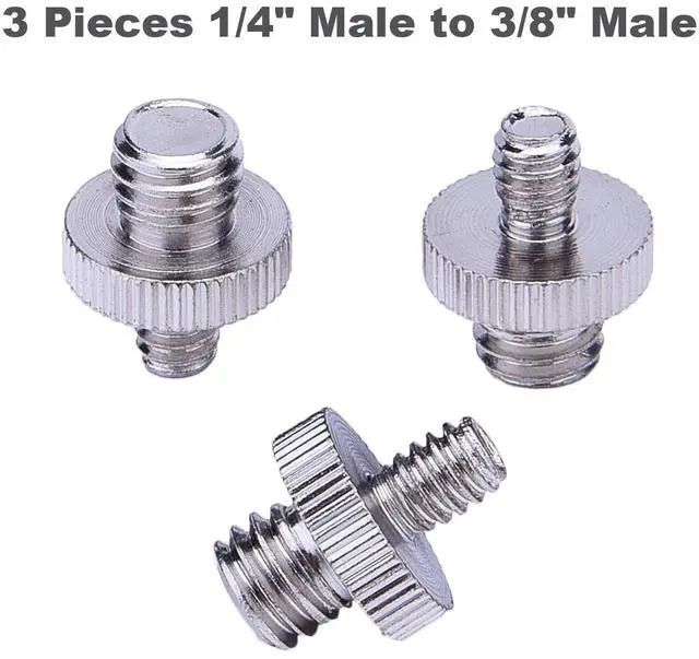 Package includes 3 pieces of 1/4 inch male to 1/4 inch male screws, 3 pieces 1/4 inch male to 3/8 inch male screws, 5 pieces 1/4 inch female to 3/8 inch screw, a piece of microfiber cleaning cloth