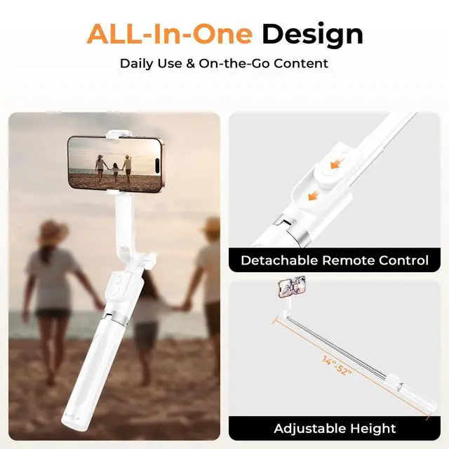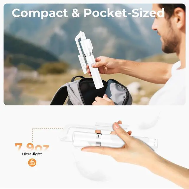 Ultimate Travel Tripod: This ultra-lightweight 2-in-1 tool functions as both a selfie stick and tripod, designed for effortless portability. The quick-setup legs provide reliable stability on various surfaces, including sand, tables, and rough terrain. Compact yet sturdy, its the perfect companion for outdoor enthusiasts and content creators to capture every adventure with ease.