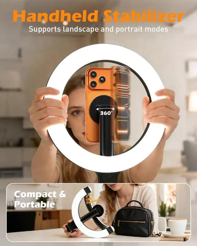 Experience brighter, smarter, and more flexible lighting with our magnetic desktop ring light. Equipped with a built-in 5000mAh high-capacity battery, it delivers an impressive 1.530 hours of runtime, ensuring reliable illumination for makeup, content creation, live streaming, and everyday use. The integrated battery display screen keeps you informed in real time, so you never have to worry about running out of power unexpectedly. Powered by 10W high-brightness output, this ring light offers crisp, even lighting for professional-quality results. Its N52 strong magnetic design allows quick, effortless attachment, while the 360° rotatable magnetic head lets you adjust the light to any angle with ease. The foldable 180° design makes storage and travel more convenient than ever. Featuring a fully adjustable overhead arm with 360° rotation and 180° tilt, the setup adapts perfectly to makeup sessions, tabletop filming, TikTok videos, live streaming, and more. Whether youre working, creating, or capturing, this versatile LED ring light ensures perfect lighting anytime, anywhere.