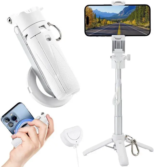 Pocket Selfie Stick with Wireless Rechargeable Remote : Just (less than most smartphones) 4.61" when closed. Small and light, enough to fit in a wallet, backpack or suitcase. Equipped with a wireless rechargeable remote remote control, the wireless connection range can reach 33 feet
