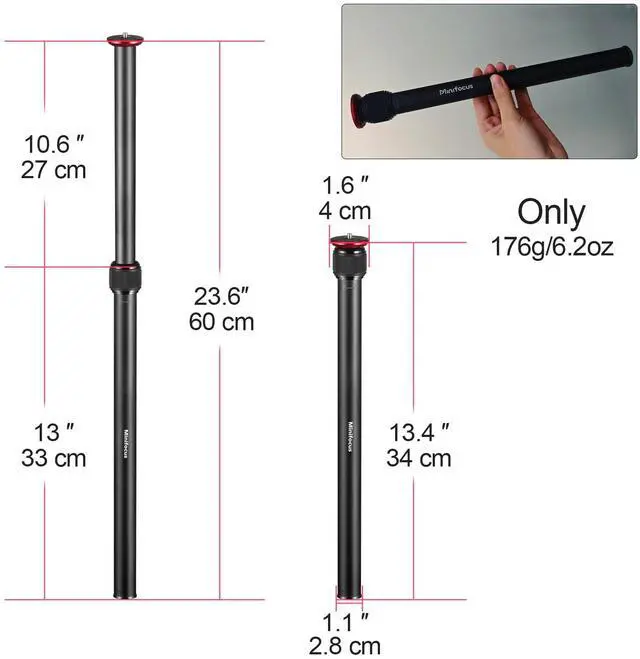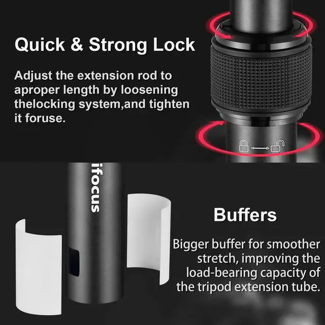 The telescopic structure allows you to adjust the height of the aluminum alloy center column from 13.2” to 23.4” (33.5cm to 59.5cm) within seconds.