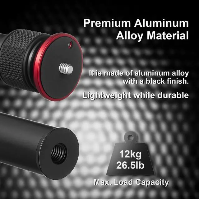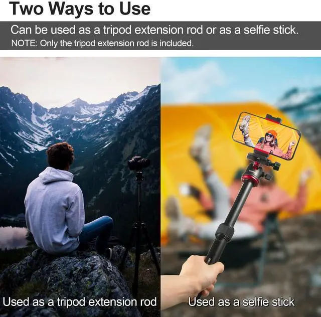 Tripod Extender, 23.4” Aluminum Alloy Tripod Extension Tube, 2-Section Center Column Handheld Telescopic Stick Rod with 1/4” to 3/8” Adapter