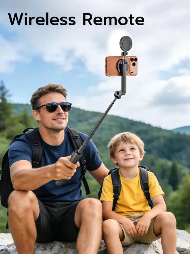 10-Meter Wireless Remote Control The cell phone tripod comes with a dedicated remote for precise control from up to 10 meters away. Effortlessly capture full-body shots and travel landscapes without assistance, eliminating the need to run back and forth to your phone.