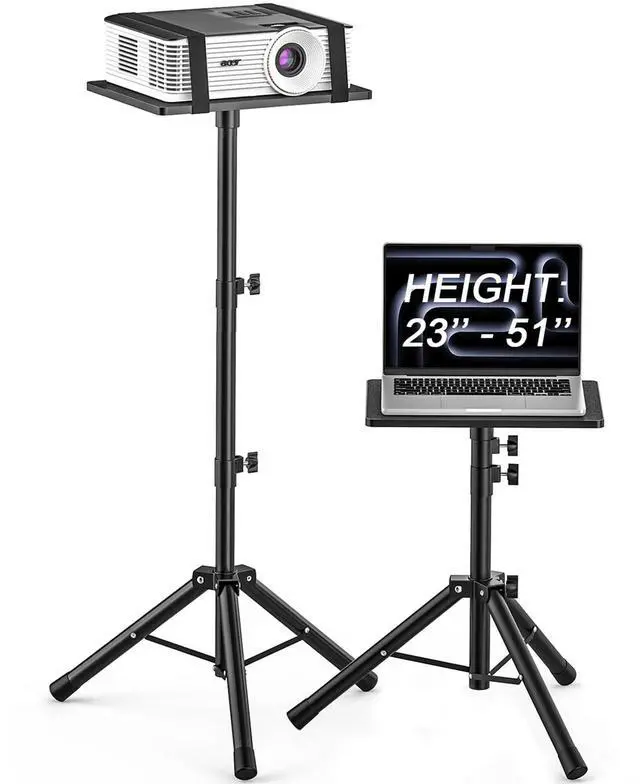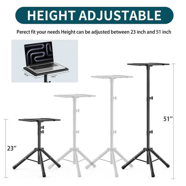 Projector Stand Tripod from 23" to 51", Laptop Tripod Stand with Elastic Band, Height Adjustable for Office, Home, Stage, Studio, Multifunctional DJ Rack Stand