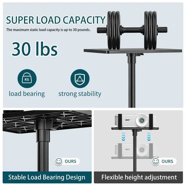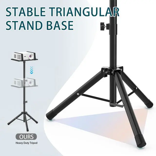 LOADING CAPACITY: The tray measures 14.2'' in width and 10.3'' in length, with a raised edge for security. This tripod stand can handle heavy loads up to 50lbs, accommodating not only portable projectors but also large or standard devices.
