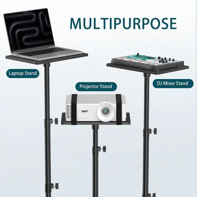 MULTIFUNCTIONAL PROJECTOR TRIPODDesigned perfectly for projectors, DJ racks, laptops, tablets, cameras, electronic devices, music notes, and books. It can be widely used for versatile scenes such as presentations, home theaters, business meetings, recordings, reading, stand-working, speeches, DJ shows, performances, and more.