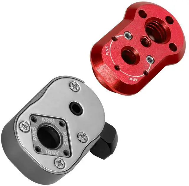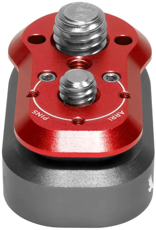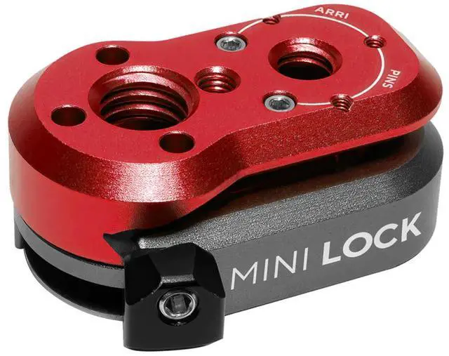 It offers a variety of professional mounting options for the male quick release plate, including a Female ARRI style mount, a Male 1/4 20 ARRI style mount with removable and storable 3mm pins, a NATO rail, 1/4 20 or f± 16 receiving threads, and 1/4 20 or f± 16 mounting bolts. These options can be combined with a centralized M4 set screw for added stability. The female Mini Lock receiver has also been upgraded with deeper f± 16 threads for enhanced security. It can accommodate removable 3mm anti-twist ARRI style pins in either orientation.