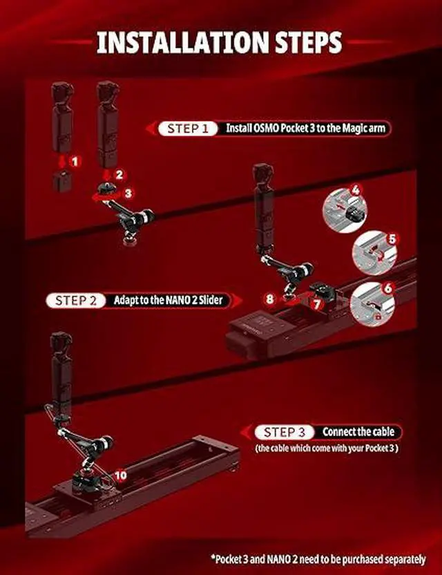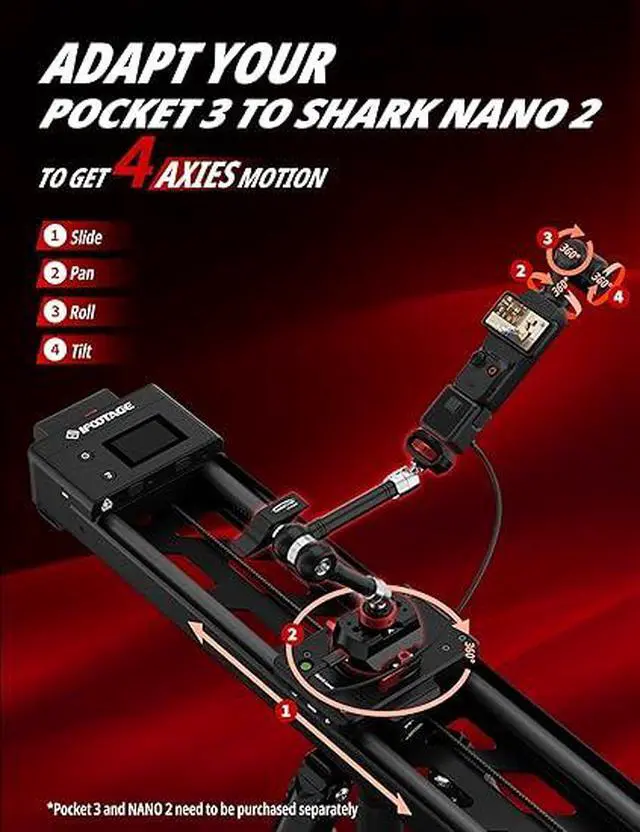 • Quick Release Mount for Nano II & Pocket 3 with 9.5'' Magic Arm, Integrating OSMO Pocket 3 and Shark Slider Nano 2 for 4 Axes Motions