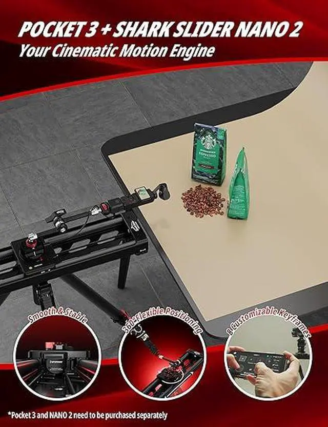5. Everything in one app:Whether youre programming keyframes or activating object tracking, the Moco App gives you full control over your Pocket 3 + Nano II setupno manual tweaking required.