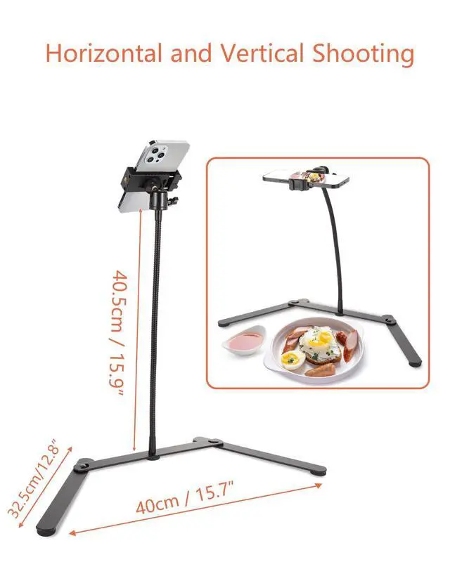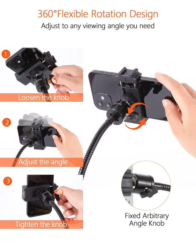 Flexible shooting angle: The head, gooseneck, and base are all adjustable. The 1/4 head ball offers 360-degree rotation, allowing you to achieve various angles to suit different application scenarios, such as video recording, live streaming, or baking.