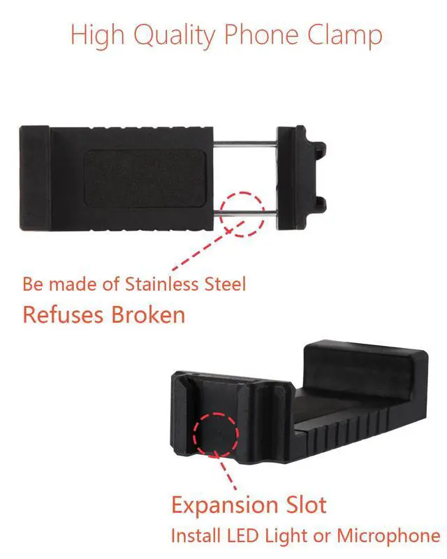 Excellent design: The tripod is constructed from high-quality solid aluminum alloy, and the trapezoidal support base provides stable and reliable support. The high-quality phone clamp and telescopic rods are made of stainless steel for durability.
