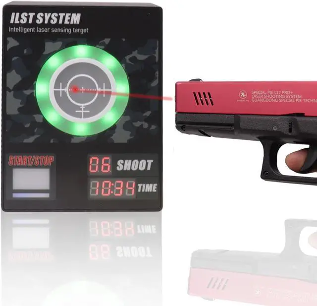 3. Power onAutomatic System CheckDefault Training Mode 4. Aim at the J10C Laser Sensing Target. 5. Pull the trigger, and the cartridge will fire a red laser dot at the target start area. 6. Start training on hearing start order from the system. 7. You will see each of your shots on the laser-sensing target in real time with realistic shooting sound effects.