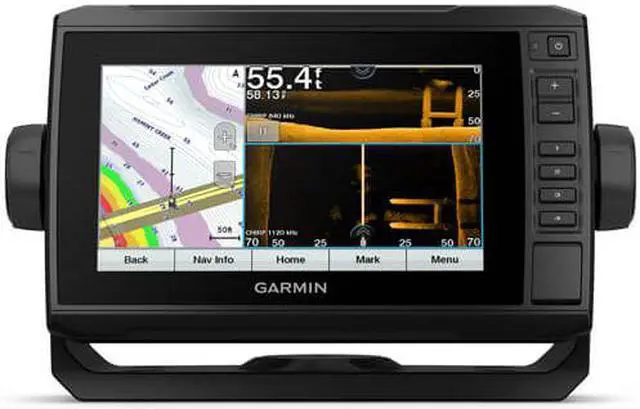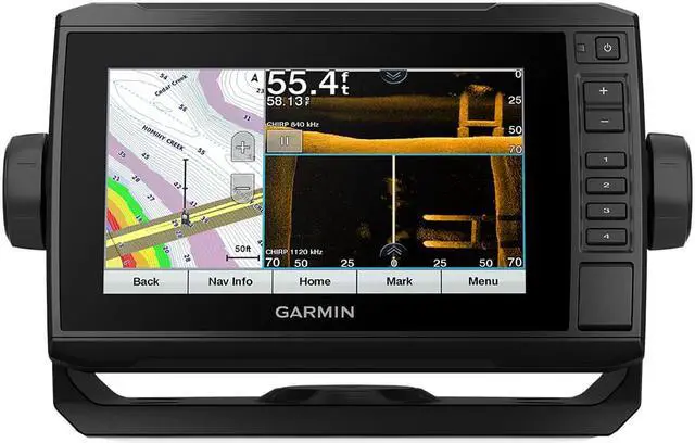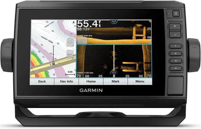 If you have multiple compatible ECHOMAP UHD or ECHOMAP Ultra devices on your boat, you can share information such as sonar, user data and charts among them (7 and 9 models only). Connect to autopilots, digital switching, weather, FUSION-Link audio system, media, VHF, AIS and more from one screen. Built-in Wi-Fi connectivity pairs with the free all-in-one mobile app for access to the OneChart feature, smart notifications1, software updates, Garmin Quickdraw Community data and more. Take control of the most powerful and efficient trolling motor available2, route it to waypoints, follow tracks and more from the screen of your chartplotter. SpecificationsGeneralPhysical dimensions 9.8 x 5.5 x 2.0 (25 x 13.9 x 5.1 cm)Display size 6.1 x 3.4; 7.0 diagonal ( 15.5 x 8.6 cm; 17.8 cm diagonal)Display resolution400 x 800 pixelsDisplay typeWVGA displayWeight 1.7 lbs. ( 0.77 kg)Water RatingIPX7Power consumption15WAntennaInternal or external over NMEA 2000Mounting optionsBail or flushReceiver5 HzGarmin Marine Network ports1 Panoptix portMaps & MemoryPreloaded mapsLakeV g3 (inland maps) Accepts data cards1 microSD card; 32 GB maximum sizeWaypoints5, 000Routes100Track log50, 000 points; 50 saved tracksOutdoor Recreation FeaturesTide tablesYesChartplotter FeaturesGarmin Sonar compatibleYesSupports AIS (tracks target ships position) YesSupports DSC (displays position data from DSC-capable VHF radio)YesGCV Black Box sonar supportYesActiveCaptain compatibleYesSailing FeaturesYesSonar Features & SpecificationsDual-frequency (50/200 kHz) sonar capableYesDual-beam (77/200 kHz) sonar capableYesTransmit power500 W (RMS) / 4, 000 W (peak to peak) CHIRP sonar technologyYes (Built-in)ClearVYes with CHIRP (built-in)SideVYes with CHIRP (built-in)Maximum depth2, 300 ft @ 77 kHz, freshwaterBottom lock (shows return from the bottom up) YesWater temperature log and graphYesSonar recordingYesSonar history rewindYesConnectionsNMEA 2000 compatibleYesTransducer pin numbers12NMEA 0183 input ports1NMEA 0183 output ports1Video input portsNoneVideo output portsNoneWireless connectivityYesWhat's in the
