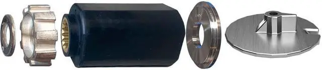 Features: DIY, easily replaceable by hand. Adaptable to many engine brands. Reliable over time, not likely to let loose & spin under normal use. Offers lower unit protection. Doesn't lock into a solid hub position. Includes shift shock and vibration dampening rubber material. Additional dampening through Hub Isolation Technology. One-year warranty.