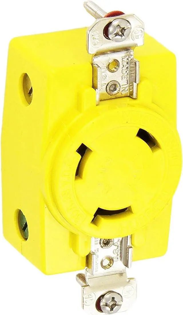 HUBBELL HBL328DCR 30A 28V DC LOCKING RECEPTACLE YELLOWThis device is rated at 28 volts DC and is applicable for all 12, 24 and 32 volt DC fishing reel systems. The device is UL listed and CSA certified. Made of high-visibility yellow nylon that is impact resistant and U. V. stabilized for longer life. Also, the contacts are nickel plated for corrosion resistance. Yellow locking single receptacle with abuse-resistant face. HBL328DCR Can be mounted in Hubbell box HBL6080 and used with HBL74CM25WOA weatherproof plate. Exempt