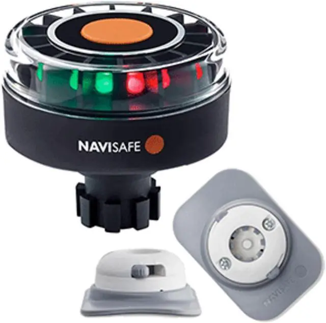 Navilight Tricolor 2NM w/Navibolt Base RIB Mount - White. Portable Tricolor Navilight with Navibolt base, compatible with Navisafe Navimount system. This is an extremely durable and strong solution. This is a very low and tight mounting solution together with the any of the Navimount. Technical Specifications: US Coast Guard approved for 2 nautical miles. 5 Modes: Tricolor Masthead light (135x white, 112,5x red, 112,5x green), BiColor side light, red side light, green side light, white Sternlight. Floats light facing up. Submersible to 20M/66 feet . Corrosion resistant. Powered by three AAA batteries (not included). Navimount RIB - White. The Navimount RIB is designed to securely attach the Navilights with Magnetic base, Navimount base or Suction base to the tube of inflatable boats. Navilight models 001, 010, 040, 305, 340 require in addition the Navisafe converter Navimount / 960. Navilight models 041 and 341 do not require additional converters and can be mounted directly. Includes: "3M" self-adhesive sticker working on boats made from Hypalon, Polyethylene or PVC.