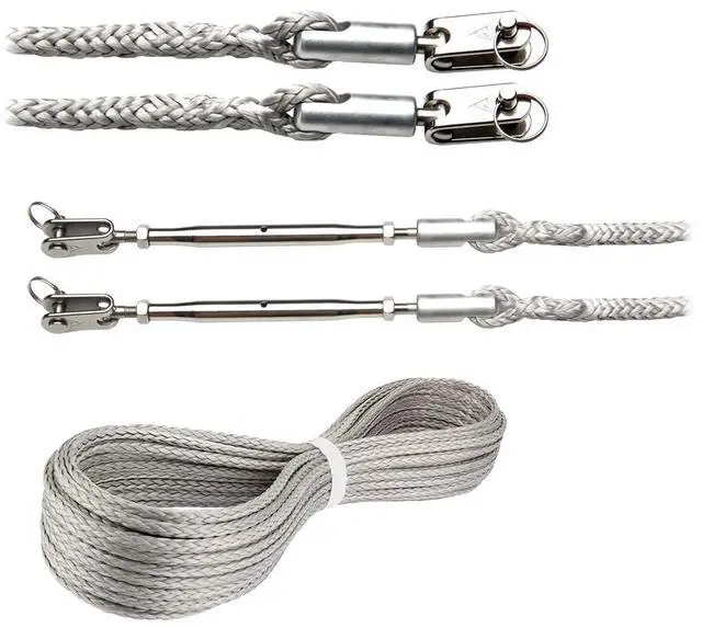 Specifications: 2 x LS-3600 Toggle Jaw w/ Splice Eye2 x LS-2900 Tubular Turnbuckle w/ Splice Eye90' Grey 1/4 (6mm) Dyneema Splicing and